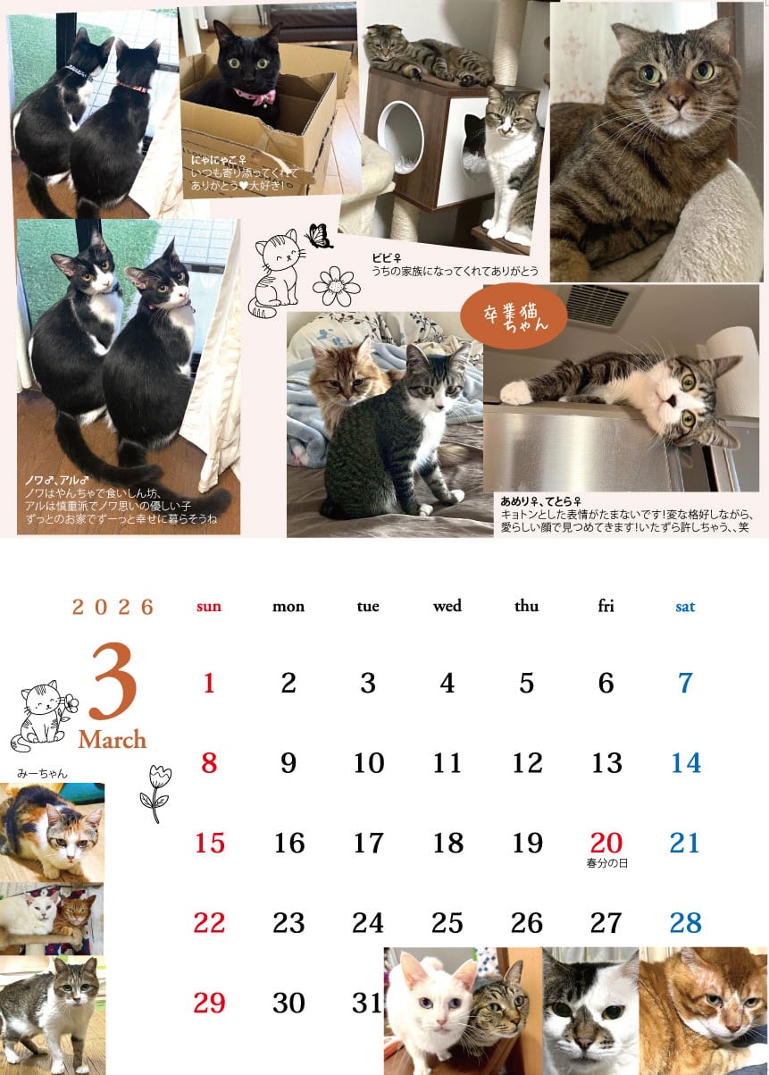 今回、里親様からご応募頂いたすべての猫ちゃんがカレンダーに掲載されています♪